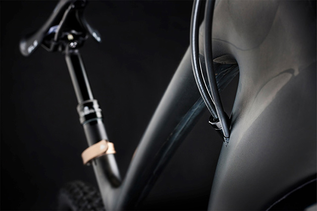 Lehký výraz údivu v nás vyvolalo zjištění, že je tenhle stodvacítkový bike v sérii vybavený teleskopickou sedlovkou a hned toho nejvyššího kalibru. Najdeme zde totiž Rock Shox Reverb Stealth, to jest model s vedením hydraulické hadice uvnitř rámu. Otázkou je, zda-li takováto libůstka najde u tohoto typu kola vůbec nějaké větší uplatnění, nebo zda-li by nebylo raději lepší ušetřit dalších cca 300 gramů z již tak nízké hmotnosti než si dopřávat občasný luxus při snižování sedla během jízdy.