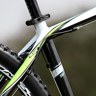 Zajímavým detailem je rovněž křížení horní rámové trubky a horních vzpěr zadní stavby se sedlovou trubkou. Najdeme zde totiž průběžnou linii, která jakoby pokračuje od přední rozšířené rámové trubky přímo do rozdvojených vzpěr zadní stavby. To nejenom že lahodí oku detailisty, ale rovněž přispívá k vyšší tuhosti krátké zadní stavby. Mimochodem, když už jsem zmínil krátkou zadní stavbu, tak je potřeba ještě dodat, že k tomu přispívá také kousek nad objímkou přesmykače prohnutá sedlová trubka.
