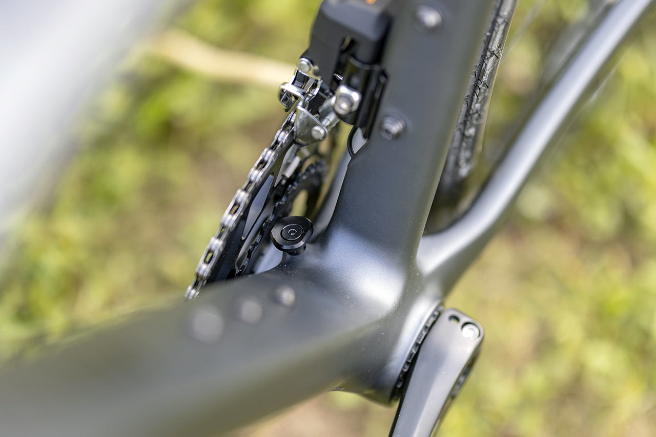 Rám nezapomíná ani na praktické montážní body pro nosiče nebo brašny na horní rámovou trubku, což z něj dělá výborný základ nejen pro rychlou jízdu po šotolině, ale i pro vícedenní výlety a bikepacking.