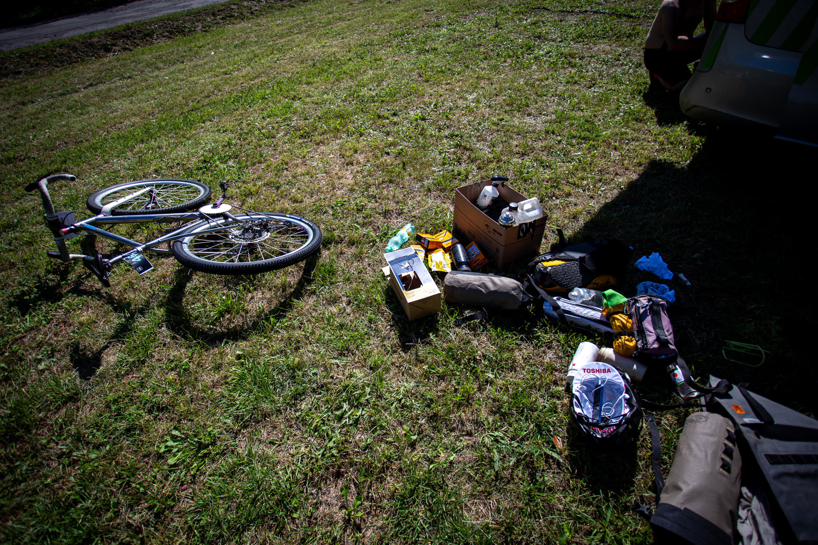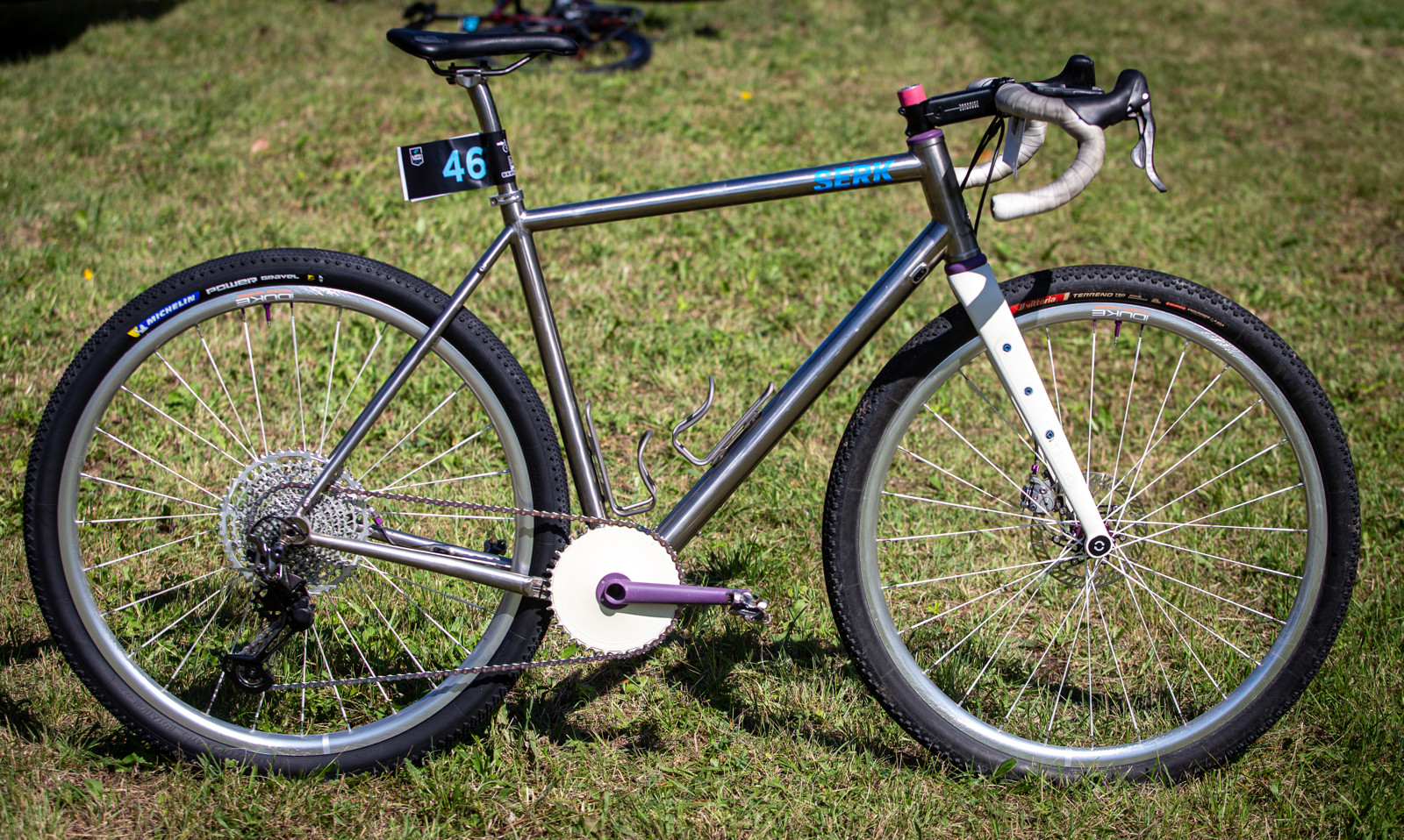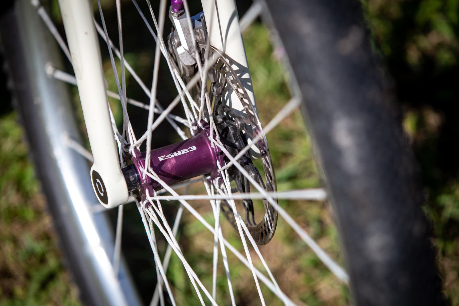 Honza dorazil na titanovém Serku s koly zapletenými z „tkaniček“ a mechanickými brzdami. „Kolo jsem si postavil podle sebe, za prvé některé značky dovážíme – např. Serk, Growtac, Cyber Cycle – a za druhé jsem si to chtěl vyzkoušet. Třeba brzdy, i když jsou mechanické, mají výjimečný brzdný výkon, super dávkování a snadnou údržbu – dělají to Japonci. Taková kola stavíme zákazníkům u nás v obchodě,“ hrdě popisuje svůj stroj, vedle kterého na trávě leží brašny a věci z putování na mistrák.