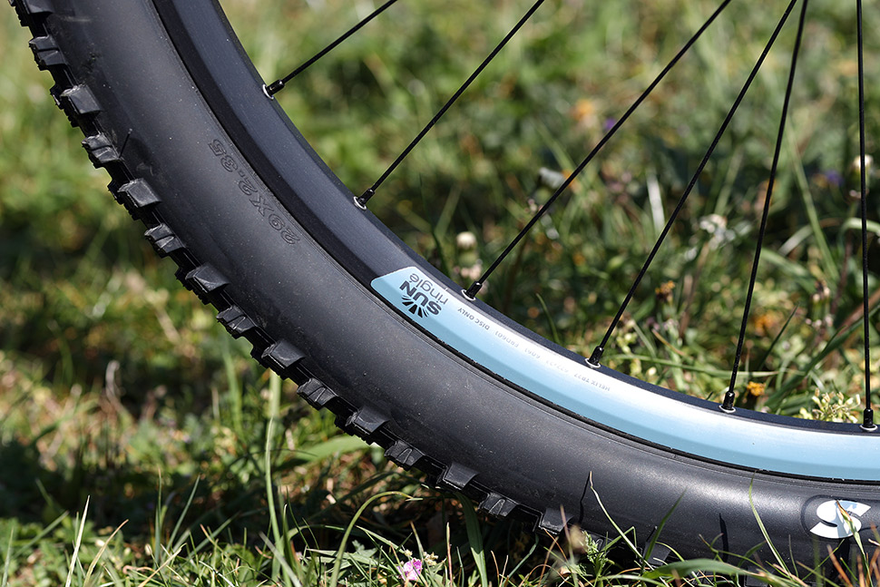 Pojďme dál. Kola si Bergamont překvapivě zaplétá ze značkových nábojů Shimano MT400 a robustních ráfků Sun Ringlé Duroc 30. Tady můžeme spíše chválit, ostatně stejně tak jako v případě zvolených plášťů Maxxis Forekaster v rozměru 29x2,35" se spoustou technologií.