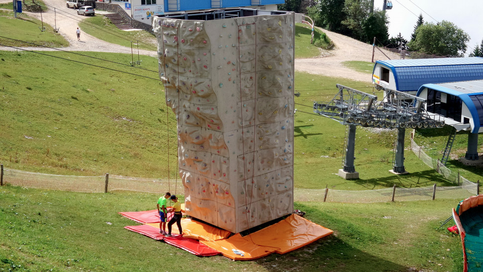 Z této atrakce jsme plynule přešli do lanového centra, které tu je součástí letního parku. Najdete tu tři trasy namotané mezi stromy a plus jednu nejjednodušší dětskou. Nechybí tu samozřejmě „flying fox“, tedy přejezd na laně, nebo chůze po slickline ve výšce mezi stromy. Cena pro dospělé je 19 euro a pro děti 10 – 15 euro podle věku. V ceně je zahrnutý vývoz kabinkovou lanovkou, zapůjčení výbavy, ale také trampolíny, tubing, lezecká věž a fresbee golf. Zatímco trampolíny najdete až nahoře u výstupu čtyřsedačkové lanovky, vše ostatní je dostupné u horní stanice kabinkové lanovky.