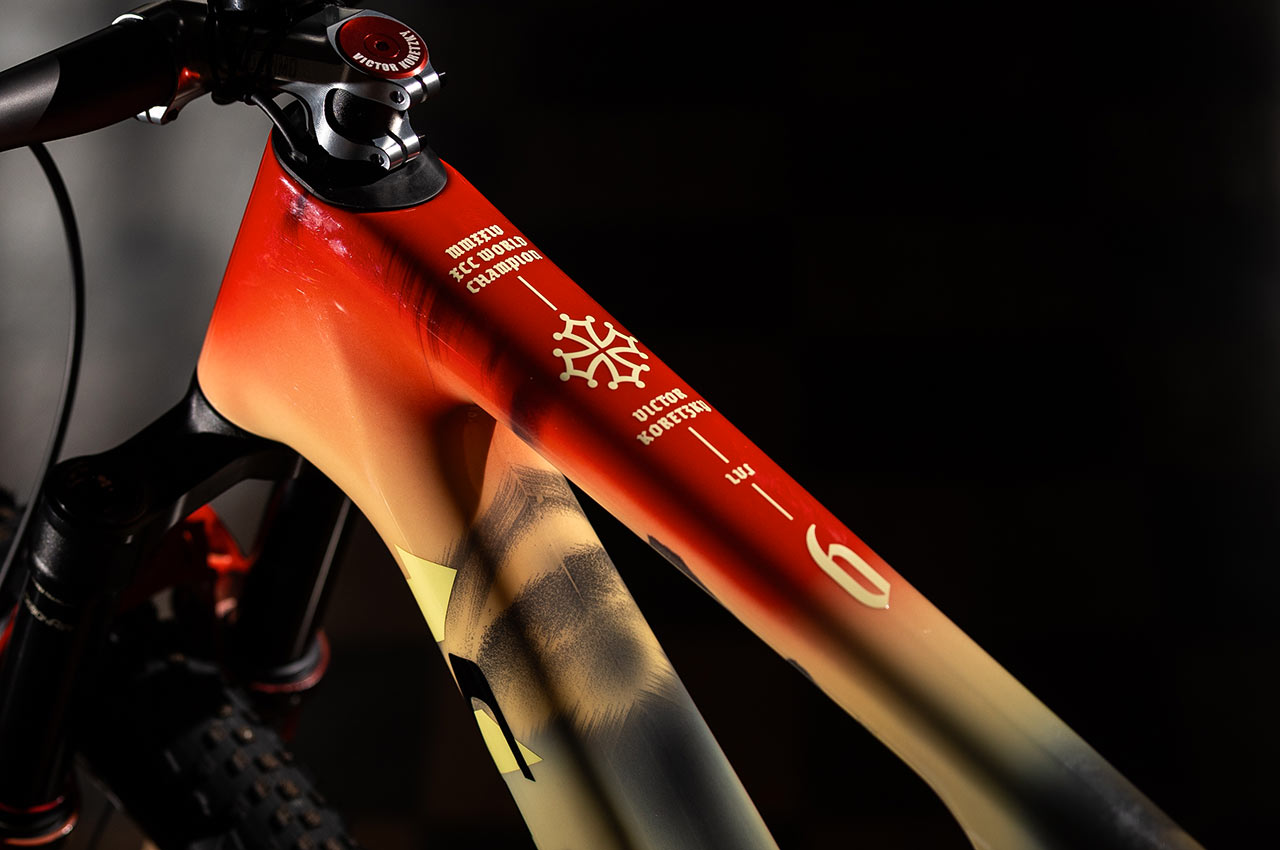 Představujme závodní stroj Victora Koretzkého, nejnovější technologie od Sramu a Rock Shoxu, ale především speciální lak inspirovaný nejen duhovým dresem...
