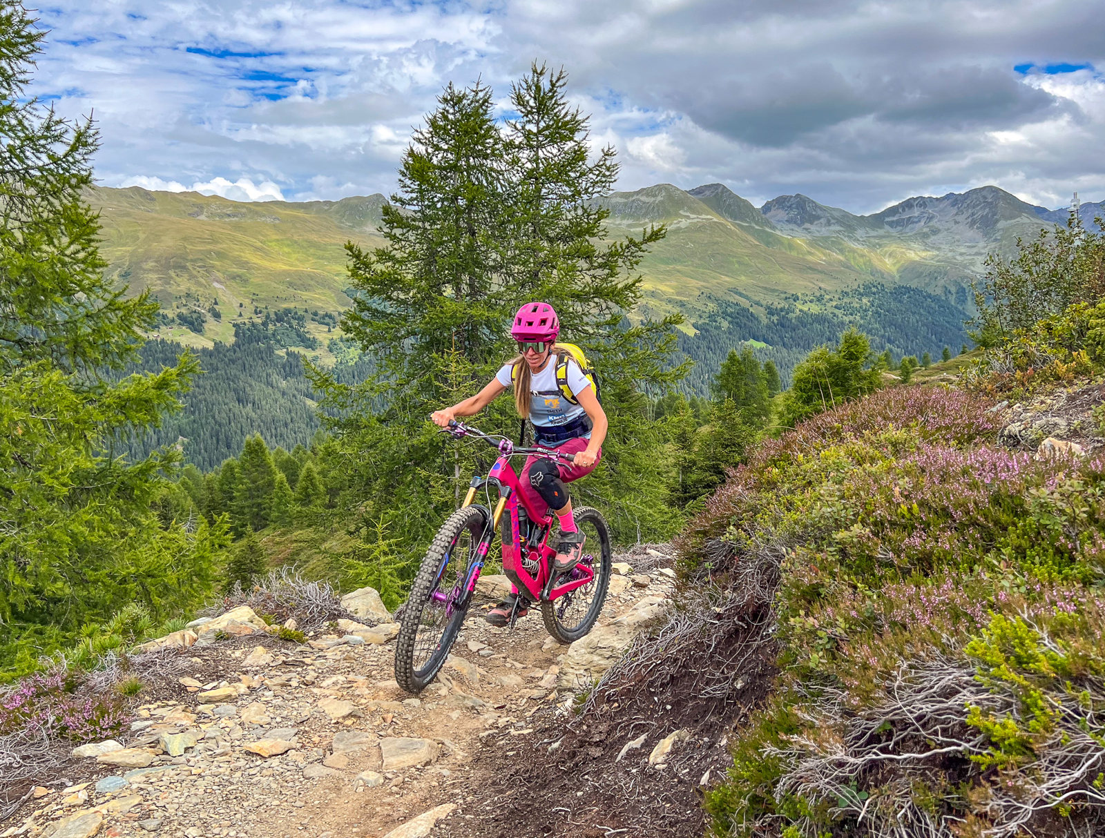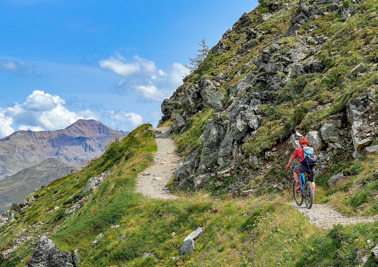 Pasáž z Jakobshornu do údolí Sertigtal považuju za nejkrásnější z celé jeho délky, protože je celou dobu z kopce a díky hornímu bezlesému úseku si můžete užívat nefalšované švýcarské scenérie. Tato horní pasáž je také specifická svými kamenitými sekcemi, a zatímco některé stačí bez brždění profrčet a odpružení kola vše pobere, pár místeček si tu už žádá i trochu technického umu. I kdybyste si tu ale měli dvakrát šlápnout, tak si tenhle trail dejte na seznam bikových přání, protože kombinaci této příjemně technické náročnosti a neskutečných výhledů by měl aspoň jednou za život zažít každý biker.