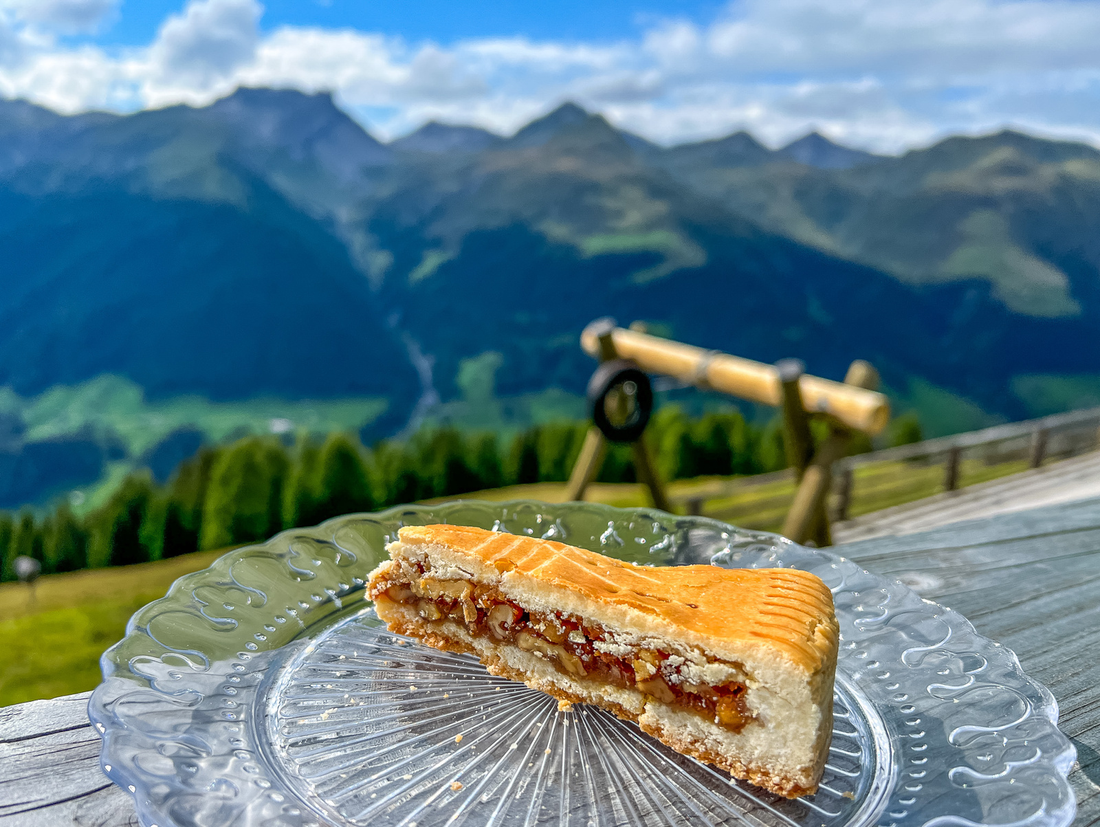 Z údolí Sertigtal máte několik možností. Buď sjet po cestě do údolí, následně po cyklostezce do Davosu a dát si tenhle trail znovu, nebo pokračovat dál po předepsané trase Alps Epic trailu, která odsud ovšem vede nekompromisně do kopce směrem na Rinnerhorn. Třetí varianta je pak sjet do údolí a po cyklostezce dojet do vesničky Glaris, odkud vám na Rinnerhorn-Jatzmeder pomůže lanovka. My jsme se tentokrát opřeli do pedálů a na Rinnerhorn si vyšlápli za své. Jelikož jde ale o obousměrný singltrail, který je místy i technický, nabylo stoupání úplně nový rozměr a já si připadala, jako bych se připravovala na olympiádu v Cross Country. Zcela objektivně jsem vyhodnotila, že za tento výkon si v Jatzmeder Hütte na Rinnerhornu zasloužím odměnu v podobě tradičního engadinského koláče s ořechy.
