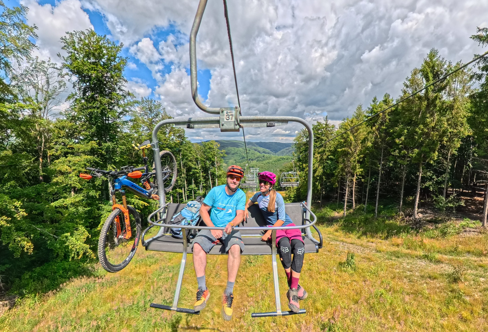 Na Hrubé Vodě jsme reportovali v helmách a brýlích značky SMITH, v oblečení DHARCO na e-biku STEVENS s pružením FOX, řetězem KMC a vložkami do kol TANNUS od firmy CYKLOŠVEC.
