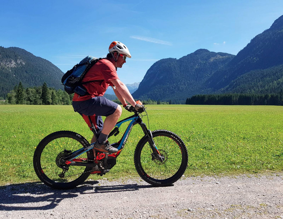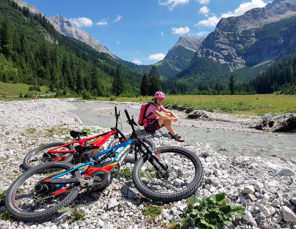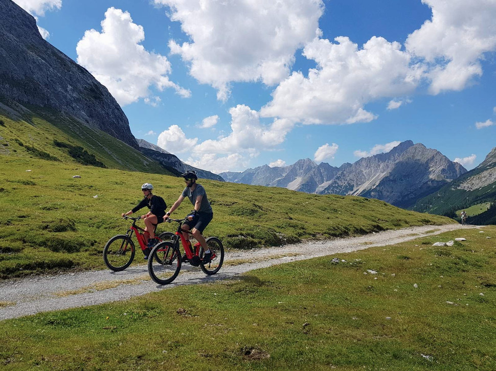 V okolí se můžete vydat jak na běžném horském, elektrokole nebo i gravelu prakticky kamkoli, cyklotrasy v délce přes 570 km tu vedou převážně po zpevněných šotolinových cestách. Abychom nemuseli v okolí tápat s mapou, vydali jsme se na e-bikový výlet s průvodcem z ebiketour.at, s kterým jsme jako cíl cyklovýletu zvolili Karwendelhütte ve vedlejším údolí. Chata je od Leutasch, odkud jsme vyráželi, vzdálená zhruba 40 km, takže elektrokolo tu má svoje oprávnění.