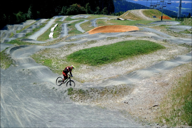 Trať Erich Popp-Trail je v podstatě obdoba trati Flow v Geisskopfu. Jde o jednoduchý uhlazený singletrack, kde nic nedrncá, takže žádné kameniště ani spletité kořeny. Jinými slovy si tu užije plynulou jízdu na kole i vaše babička, a jestli vaše děti začínají „přičichávat“ ke kráse bikeparků, je tato trať tou první, na kterou byste je měli vzít. Zkušený bajker si tu pak na vlnách i zaskáče a zařádí v klopenkách.