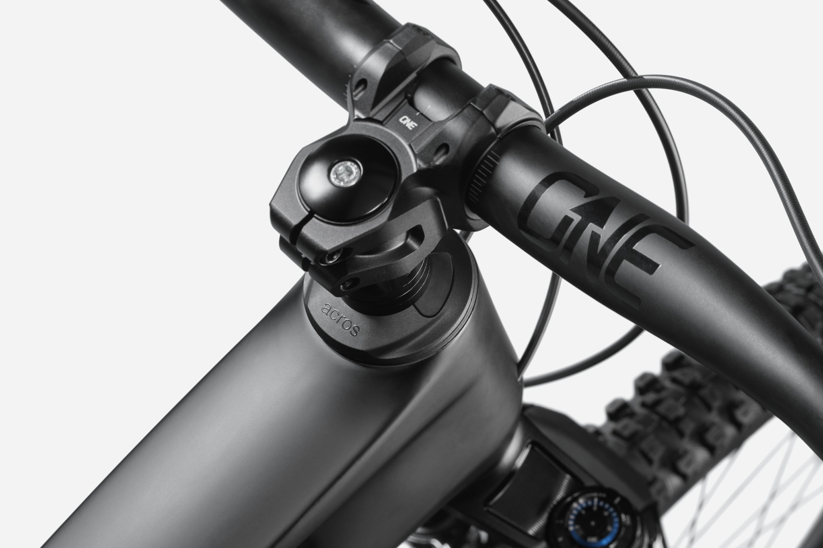Zajímavým a praktickým detailem je hlavové složení Acros, které kromě vyhlášené spolehlivosti nabízí i možnost doladění geometrie pomocí samostatně prodávaných úhlových misek (angle-set). Jezdec tak může relativně jednoduše pozměnit chování kola podle terénu nebo vlastních preferencí. Druhým praktickým bonusem tohoto řešení je možnost vybrat si, zda vedení kabeláže poběží klasickými vstupy do rámu (zepředu hlavové trubky), nebo právě skrz hlavové složení Acros.