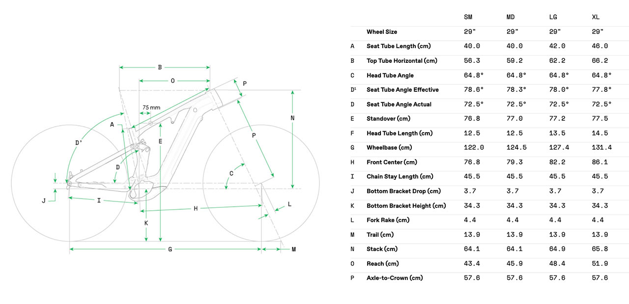 Web Cannondale: "Prémiový hliníkový rám SmartForm C1 s přístupem "Proportional Response" ke geometrii a ladění tlumení. Rám je odladěn pro 29" kola a vzduchové tlumiče."