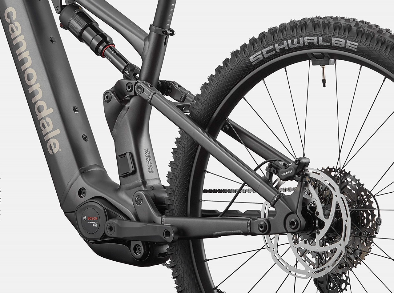 Odpružení nabízí all mountain zdvihy 160 mm vpředu a 150 mm vzadu, které využívají v obou případech plně vzduchového odpružení. Obě kola jsou zde výhradně 29", ale Cannondale zde využívá opačnou logiku osazování baterií než u karbonových modelů. Důraz zde totiž není primárně kladen na nízkou hmotnost, ale na delší dojezd. Dostupnější Moterra 4 tak dostává menší 600Wh baterii, zatímco lépe osazená trojka nabídne delší dojezd díky 800Wh baterii.