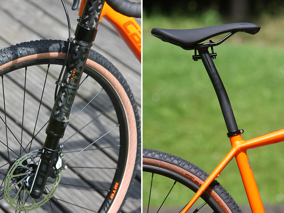Ohledně zbylého osazení musím pochválit karbonovou sedlovku Cannondale SAVE, která je součástí zmiňovaného konceptu SAVE zadní stavby a spolu s průměrem 27,2 mm se stará o komfortní tlumení vibrací rámu. Zbytek tvoří Cannondale hliníkové komponenty kokpitu doplněné o Fabric Scoop Radius Elite sedlo.