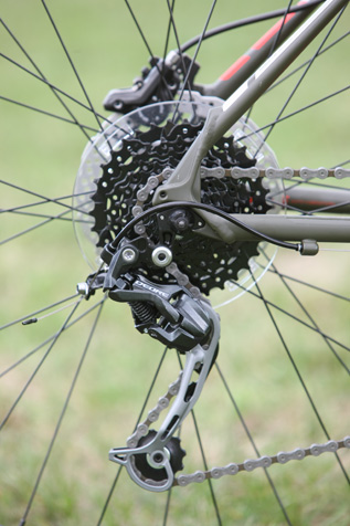Trail trojka je v podstatě komplet postavený na Shimano Aliviu, doplněném o Deore přehazovačku. V tomto případě jde tedy o kombinaci 3x9 s tím, že na klikách najdete 22/30/40 zubové placky, zatímco Sunrace kazeta nabídne turistický univerzál s 11-34 zuby.