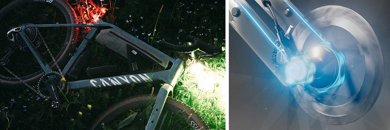 Náročnější jezdci nebo ti, kdo vyrážejí opravdu daleko, mohou sáhnout po verzích s technologií ECLIPS – integrovaným systémem napájení a osvětlení, která kombinuje dynamo, baterii, Lupine výkonná světla a USB-C výstup pro dobíjení zařízení. Klíčovým prvkem je Canyon BlackBox – řídicí jednotka, která optimalizuje napájení a komunikuje přes Canyon App. Výsledkem je plná soběstačnost na trase, světla svítící i při zastavení a nulová starost o to, jestli vám dojde energie uprostřed divočiny.