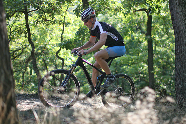 Múže za to samozřejmě dílem Shimano XTR, kterému je těžké cokoliv vytýkat, dílem skvělé výplety Mavic Crossmax SLR a dílem samozřejmě také samotný rám. Mimochodem chod zadní stavby, která je vyrobena z jediného kusu karbonu a díky které může být tlumič uložen jako plovoucí aniž by byl spojen s předním rámovým trojůhelníkem je výborná. Progrese rozumná, nikoliv však přehnaná, aktivnost v režimu tlumiče "D" výborná a naopak při šlapání v sedle a s aktivním módem C se zadek téměř ani nehnul a to prosím Fox tuhle polohu nenazývá lockoutem. Zkrátka a dobře napákování a kinematika spolu s CTD Fox tlumením se podařila německým konstruktérům vyladit na jedničku.
