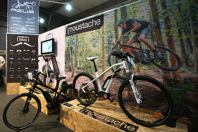 Zajímavá elektro kola přivezl Azub, který představuje značku Moustache. Ta se pyšní prvním elektrokolem vybaveným současně dvěma průměry kol, zadním 27,5" a předním 29" - komplet na pohonech Bosch.