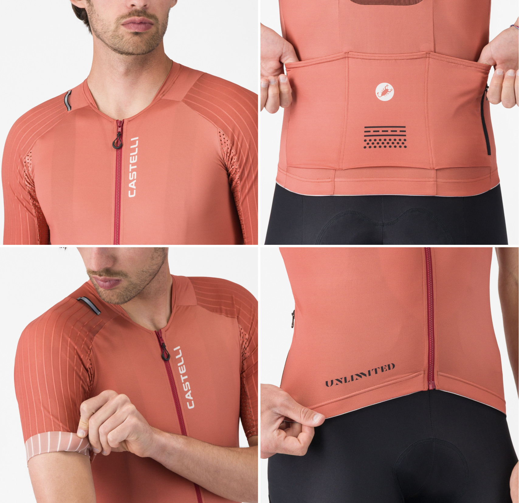Kombinéza Unlimited Speedsuit spojuje zmíněný dres s kraťasy Free Aero Race S, které Castelli označuje za nejrychlejší a nejkomfortnější ve své nabídce. Spodní část využívá materiál Forza2 Stretch s deklarovaným snížením aerodynamického odporu o 3 %.