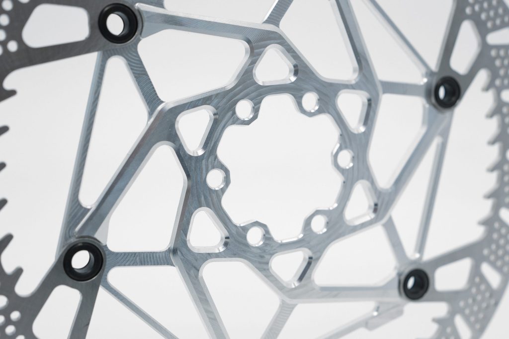Novinkou je zde hliníkový střed kotouče který je vyroben z letecké slitiny hliníku 7075-T6 metodou precizního CNC obrábění. Díky tomu nabízí vysokou tuhost při nízké hmotnosti a stabilní chování i v extrémních podmínkách. Galfer uvádí, že díky pětimilimetrovému jádru se navíc kotouč lépe vyrovnává s asymetrickým tlakem pístků a přispívá k rovnoměrnému opotřebení destiček. Pevnost a odolnost spoje pak zajišťuje nýtování pomocí odlehčených dutých nerezových nýtů.