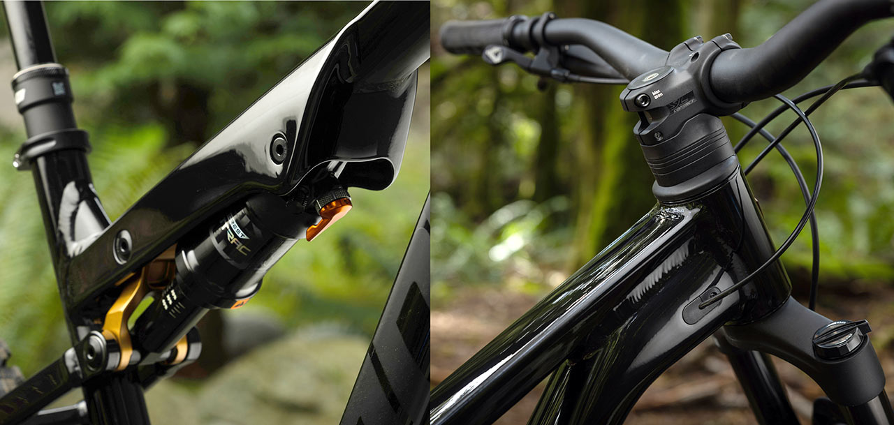 Přední část rámu využívá integrované podložky pod představcem pro čistší kokpit nicménězpůsob vstupu kabeláže je do rámu je možné si zvolit a to mezi interním a externím vedením kabelů, což usnadňuje servis i budoucí upgrady, a nechává na každém z nás, jaký způsob preferuje.
