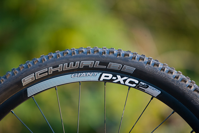 Co se týká zapletených kol, tak použité ráfky Giant P-XC29 2 vypadají poměrně robustně a odolně stejně tak jako náboje. Komplet kola nesou hlavičku Giant stejně tak jako řídítka, představec, sedlo i sedlovka. Mimochodem, Giant vsadil i u tohoto modelu na teleskopickou sedlovku vlastní produkce ovládanou páčkou z řídítek a nutno podotknout, že její funkce byla velmi slušná. Více se o ní zmíníme později.