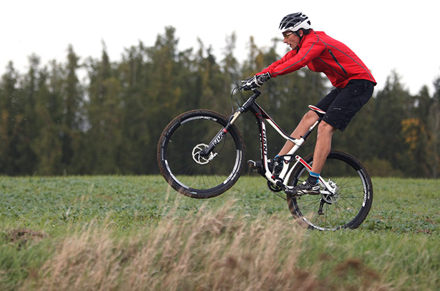 Krátká zadní stavba a geometrie v terénu dělá divy. Kolo otočíte na pětníku a tvrzení, že jde o devětadvacítku doslova předurčenou k manuálu (jízdě po zadním kole) musíme jenom potvrdit stejně tak jako skutečnost, že odlepit jí do země a přeskočit přes cestu spadlou kládu s ní jde doslova samo. Jestliže se nějaký 29" bike blíží svou ovladatelností 26" kolům, tak je to právě TranceX 29er.