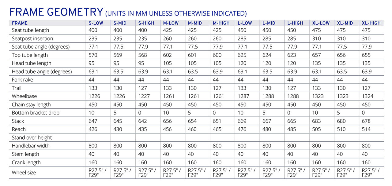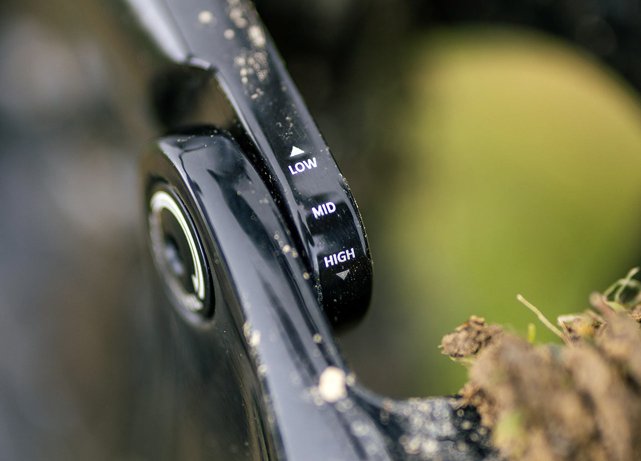 K dokonalé ovladatelnosti přispívá i možnost ladit geometrii. Trojpolohový flip chip v zadní stavbě umožňuje volit mezi pozicemi low, mid a high, které mění úhel hlavové i sedlové trubky a výšku středu. Novinkou je také hlavový flip chip, který dovoluje upravit reach o ±5 mm, takže jezdec si může kolo přesně doladit podle stylu jízdy nebo terénu.