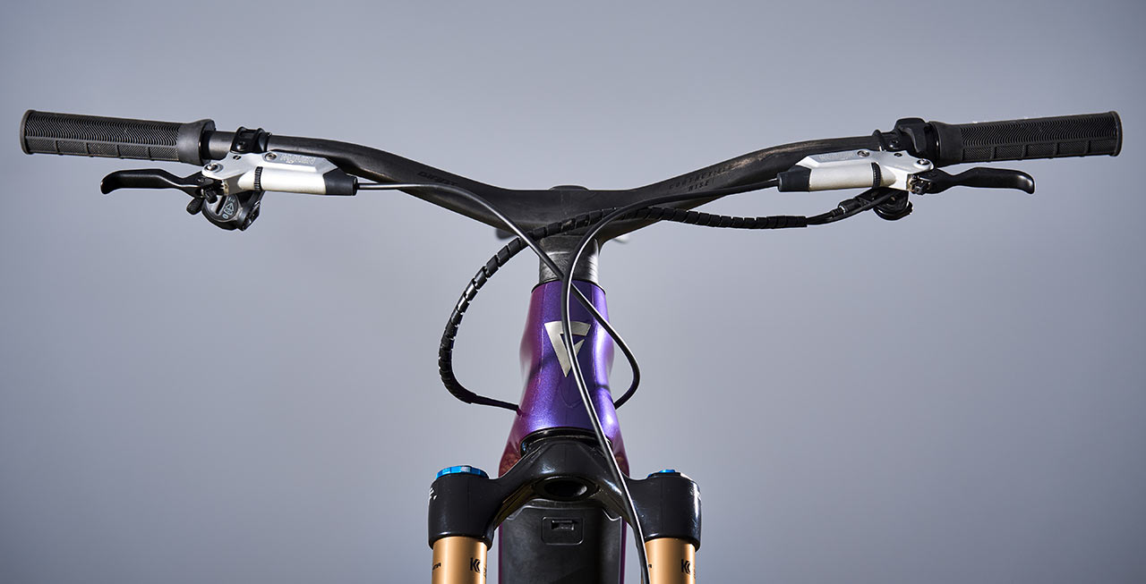 Zadní stavba využívá progresivní křivku přepákování, která je na začátku zdvihu citlivá a na konci pak odpružení výrazně tuhne. Výsledkem je maximální kontrola i v těch nejdrsnějších sjezdech, rockgardenech nebo při dopadech z dropů. Výrazný sloping horní rámovky pak posouvá těžiště biku ještě níže což pomáhá při snadné ovladatelnosti.