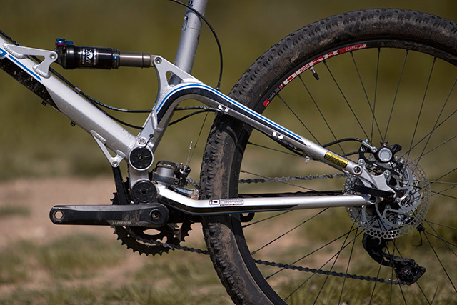 Když se podíváte na tenhle Sensor, na první pohled jde o bike s nálepkou GT. Charakteristicky esovitě prohnutá horní rámová trubka, vodorovně uvnitř rámu situovaný tlumič nebo nad klikami končící spodní rámová trubka. To jsou nezaměnitelné znaky, kterých se GT drží snad vyjma sjezdového Fury u všech svých celoodpružených modelových řad.