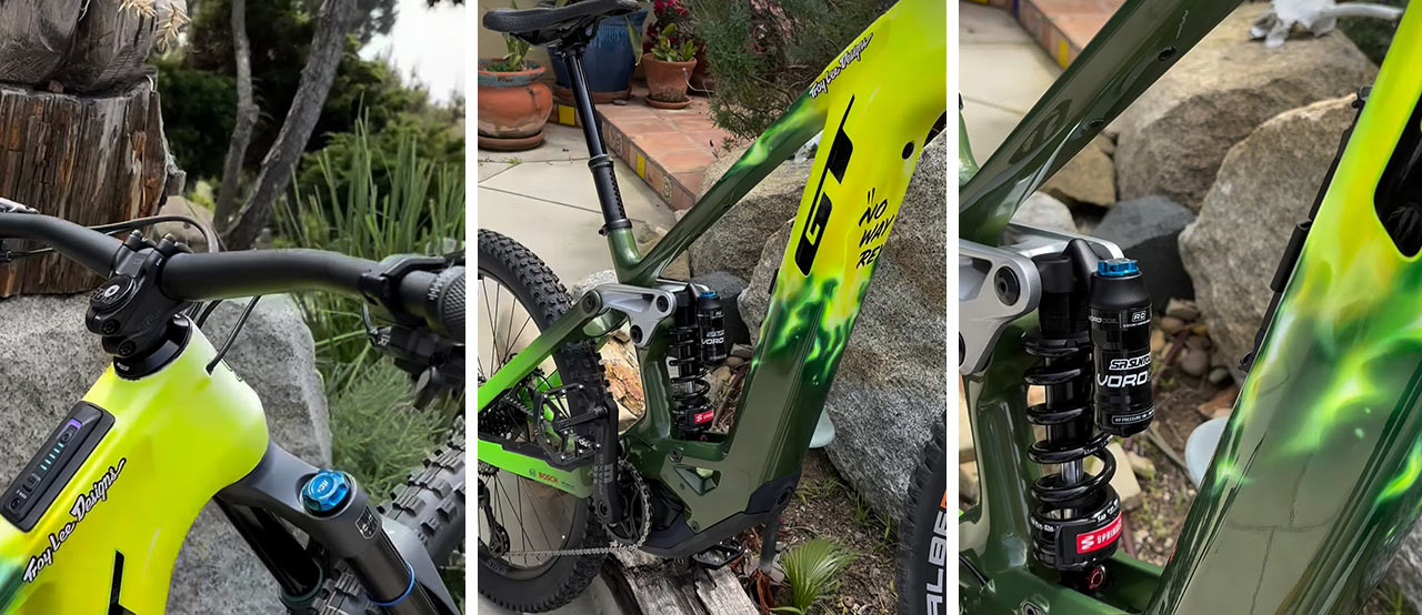 Mimochodem, jeho poslední bike, na kterém jezdí několik měsíců je taktéž prototyp, ovšem celoodpruženého ebiku, postaveného na nejnovějším pohonu Bosch CX Performance páté generace který originálním custom lakem opatřil samotný Troy Lee.