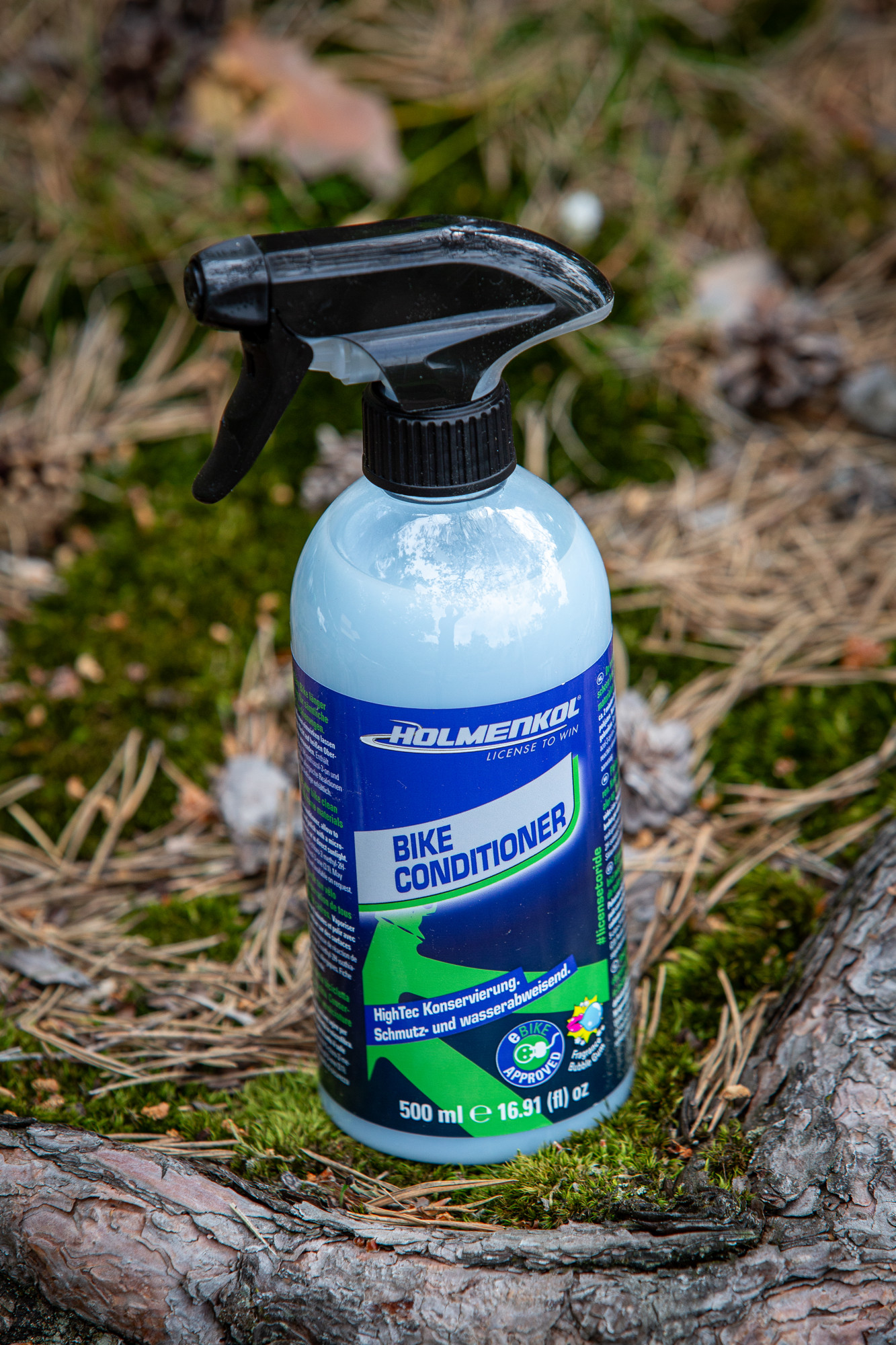 Zkušenosti: Vzhledově zajímavá krémově modrá tekutina v lahvičce s rozprašovačem, kterou stačí nastříkat na rám a další součásti kola, vše pak po krátké chvíli náležitě rozleštit. Zajímavá a zábavná je také originální „žvýkačková“ vůně. Z naší zkušenosti se rozhodně vyplatí držet se doporučení a nepoužívat tento prostředek na přímém slunci, zároveň je vhodné věnovat dost času důkladnému rozleštění (stačí čistý hadřík), aby na kole nezůstávaly kapky nebo mapy. Bike Conditioner můžete aplikovat jen jednou za čas, jelikož při následném čistění stačí kolo často jen zlehka opláchnout. Po opakovaném mytí se ale vyplatí obnovit vrstvu „kondicionéru“ Holmenkol.