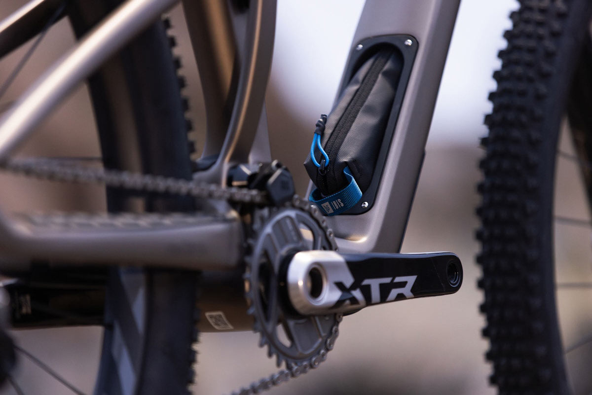 Rám přináší i několik praktických detailů. Uvnitř spodní trubky je integrovaný úložný prostor "Ibis STOW" se dvěma organizéry, nechybí klasický závitový střed BSA ani přehledné vedení kabeláže mimo hlavové složení. Větší velikosti rámu navíc pojmou dvě lahve uvnitř předního trojúhelníku, což není u moderních celoodpružených kol vůbec samozřejmostí.