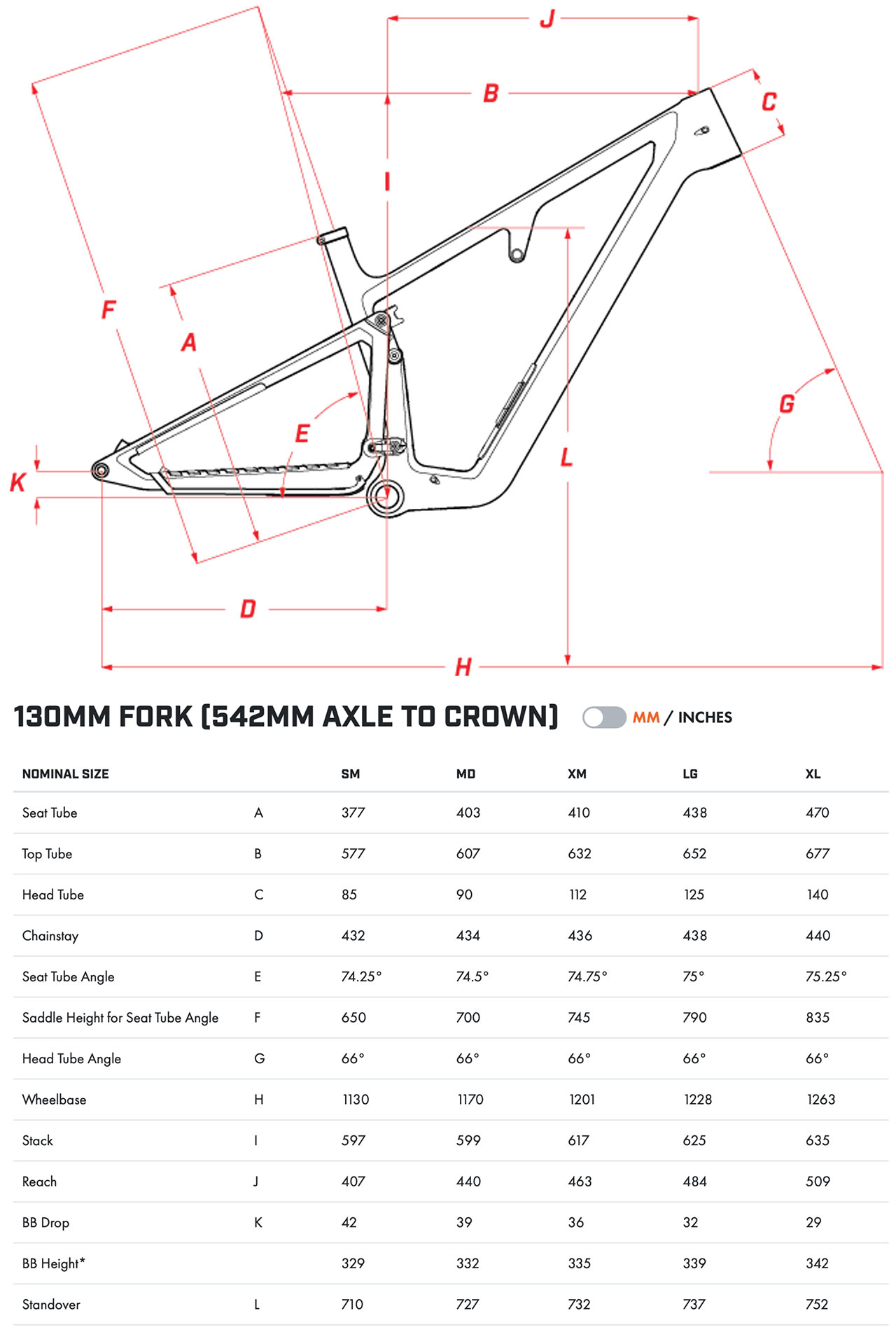 Geometrie jasně naznačuje posun směrem k downcountry segmentu. Hlavový úhel 66° je o více než stupeň položenější než u předchozího modelu Exie, což zlepšuje stabilitu ve sjezdech a na technických trailech. Zadní stavba se liší podle velikosti rámu v rozmezí 432–440 mm a celkově je k dispozici pět velikostí pro jezdce přibližně od 152 do 201 cm výšky. Všechny verze využívají výhradně 29" kola a rám poskytuje prostor pro pláště až do šířky 2,4".
