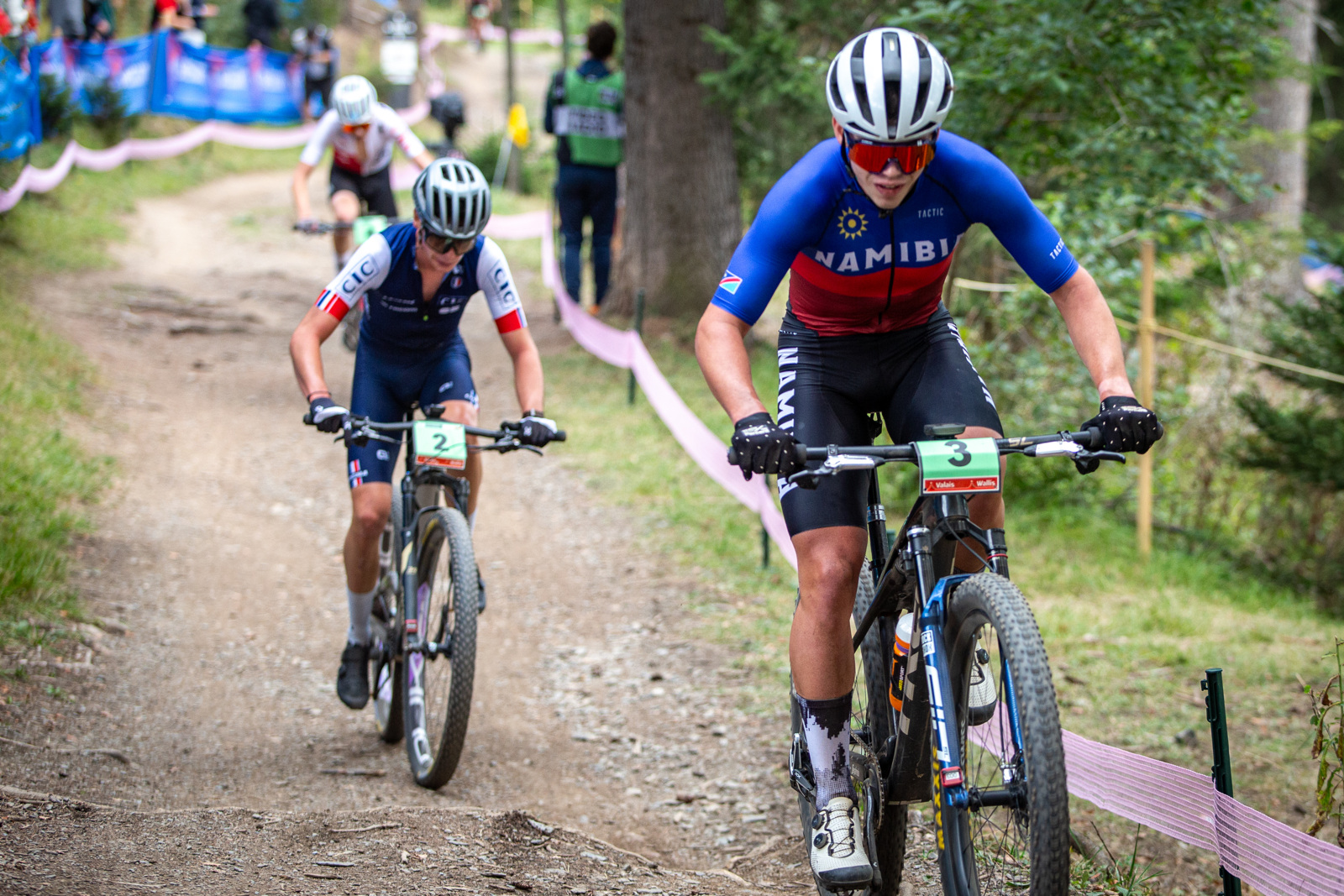 Závod juniorů byl o poznání dramatičtější než závod žen, který až na pár chvil opanovala Slovinka. Ohromný balík 92 jezdců z 35 řídila do půlky šestikolového závodu skupinka sedmi bikerů. Ve druhé půlce se pak odpojila trojice, kde výraznou aktivitu ukazoval Roger Suren z Namíbie. Seděly mu výjezdy, kde si vždy dokázal vybudovat mírný náskok na dotírajícího Lewina Itena (SUI) a Lucase Testeho (FRA), kteří zase byli lepší v technických sjezdech. Rozhodlo až poslední kolo, kde v závěrečné dva sjezdy Francouz prolétl výrazně rychleji a dokázal zase sebou soupeře nechat. Teste v cíli brečel radostí, protože má se včerejšími štafetami, už druhý titul. A plakal i Namibijec - buď smutkem ze ztráty zlata, které bylo na dosah nebo radostí ze stříbra, které pravděpodobně vůbec první pro Namibii.