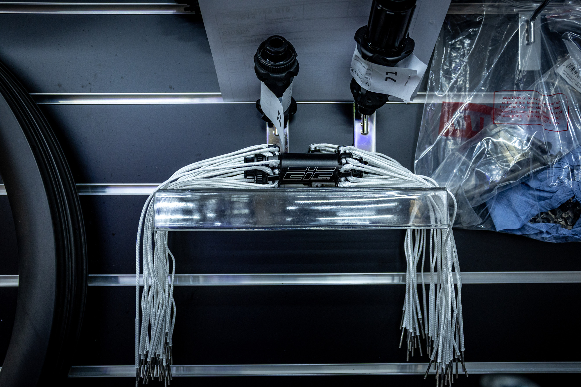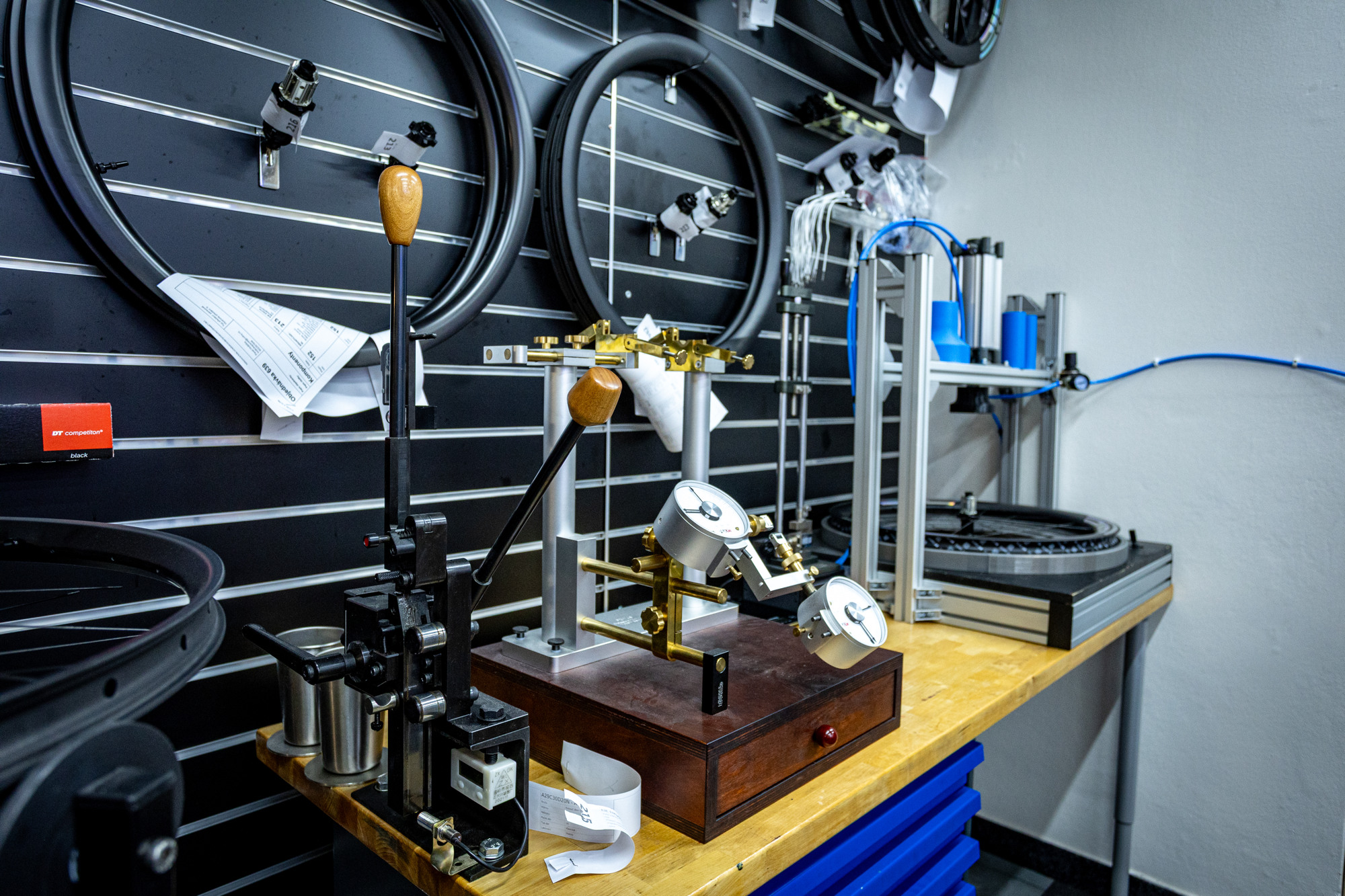 Ráfky dorazí, ale finální kola vznikají v Česku. Většina zakázek je dnes čistý custom – zákazník si zvolí náboje, paprsky, výšku ráfku i hmotnostní variantu. Část nabídky tvoří i „katalogové“ sety objednatelné přímo přes e-shop, ale i ty se zaplétají ručně v dílně.