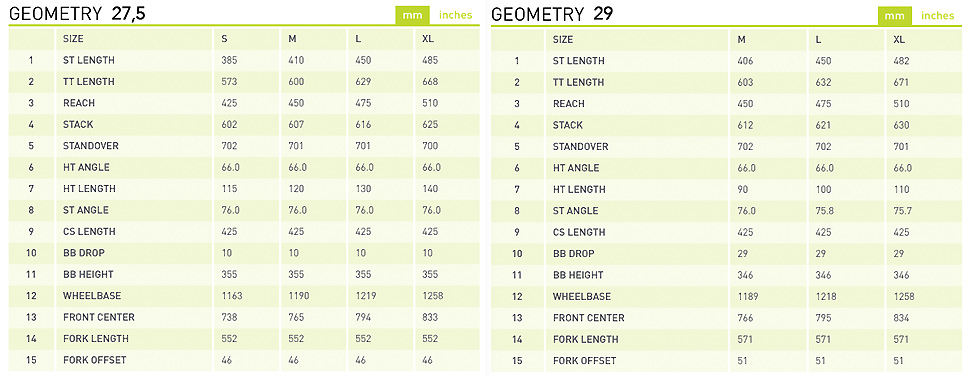 Zajímavé je, že devětadvacítkové Processy se od svých 27,5" sourozenců neliší v podstatě ani v úhlech ani v délkách. Devětadvacítky jsou k dispozici pouze ve třech velikostech, zatímco sedmadvacítky nabízejí ještě i eSkovou verzi. Podrobně prostudovat rozdíly v obou geometriích můžete v následující tabulce: