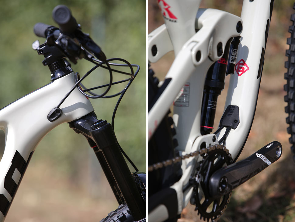Vedení kabeláže je zde kompletně vnitřkem, a to včetně zadní stavby. Přední trojúhelník je navržený tak, aby se do něj vešla i jedna láhev a nechybí ani propracovaná ochrana rámu na inkriminovaných místech. Dvouplacku na rám nedáte, stejně tak jako přesmykač, protože to by pak nemohla být tak krátká zadní stavba.