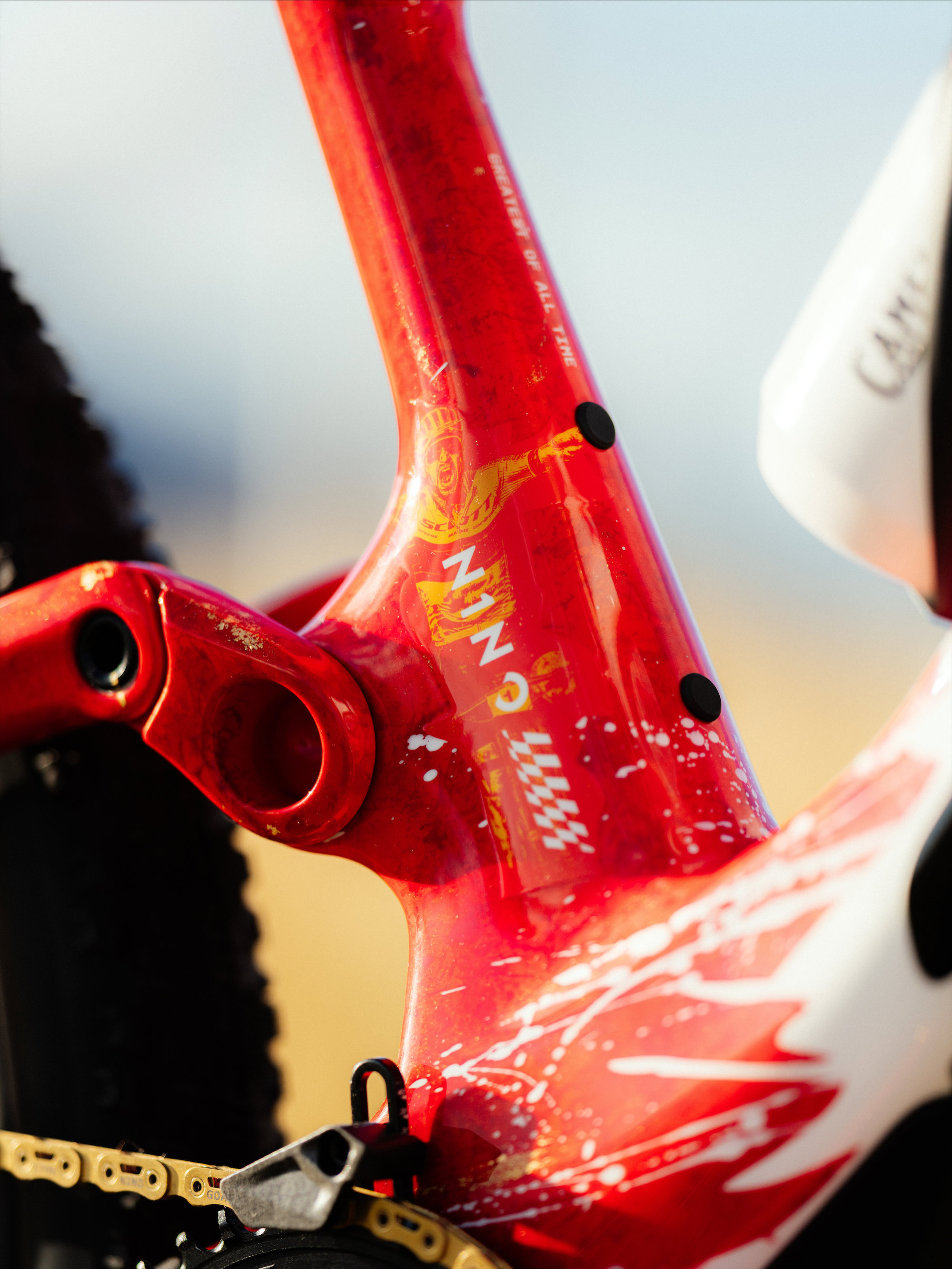 Za jeho úspěchy však nestojí jen značky a týmoví kolegové, ale také přátelé a rivalové, kteří ho provázeli víc než dvě desetiletí. A především jeden člověk: Yanick Gyger, lépe známý jako Yanick the Mechanic – dlouholetý klíčový člen týmu Thomase Frischknechta. „Mít tu čest stavět  tohle kolo pro Ninův poslední závod Světového poháru v Lenzerheide byl nezapomenutelný moment. Upřímně, je to jeden z nejlepších designů, jaké jsem kdy měl možnost připravit,“ svěřil se mechanik, který kolo odhalil jako překvapení těsně před startem závodního víkendu. Yanick-the-Mechanic - Ninův blízký přítel a osobní mechanik je považován za jednoho z nejlepších v celém XC pelotonu. Postavil mu nespočet kol, ale tohle je zcela jedinečné – kolo, s nímž se GOAT rozloučí se Světovým pohárem.