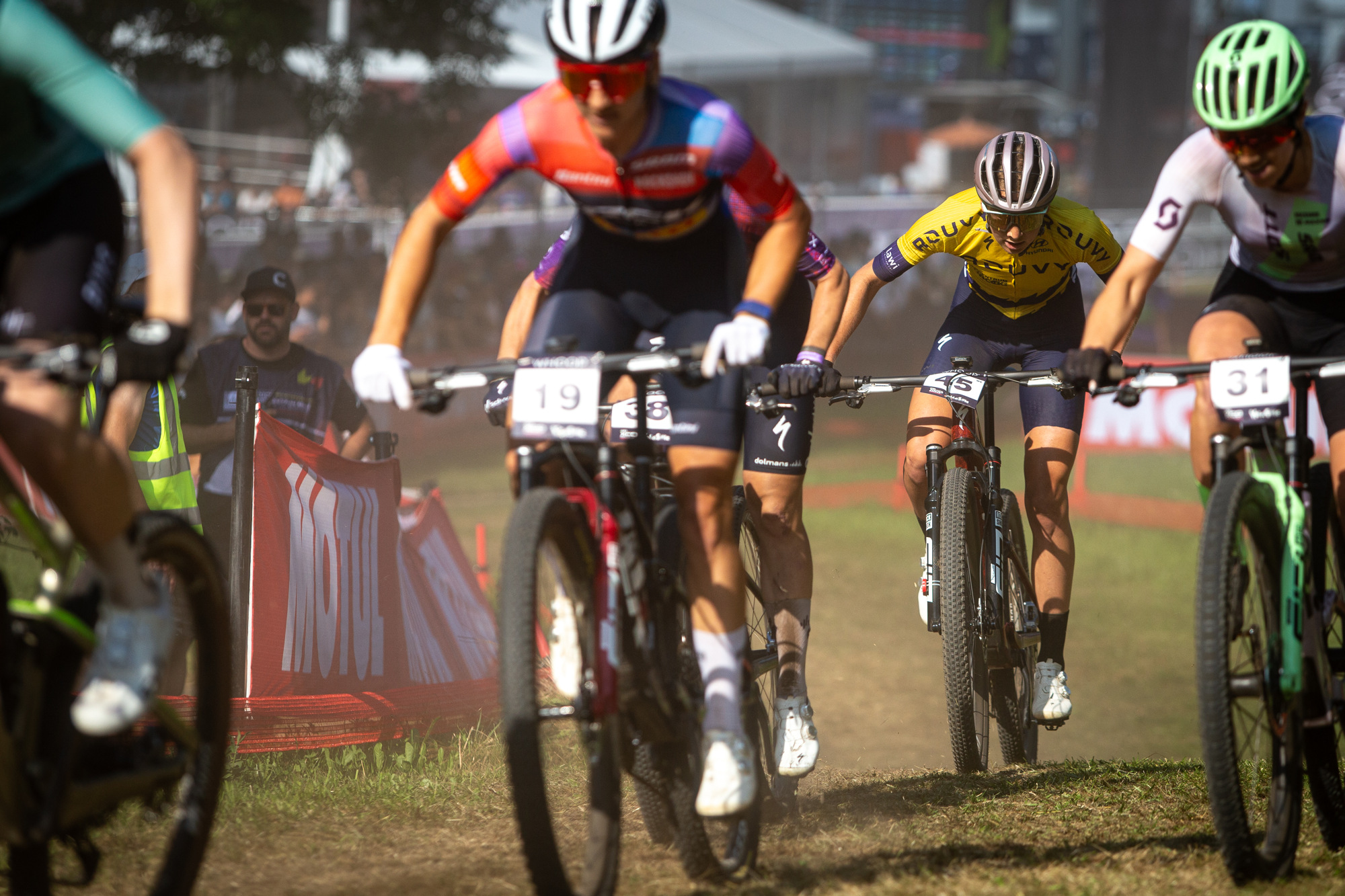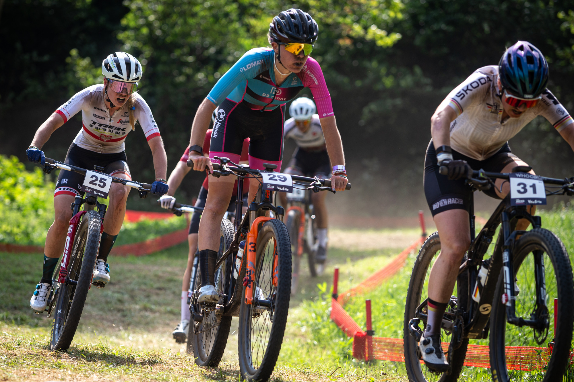 Závod žen si od začátku hlídala Puck Pieterse. Když nebyla na samotném čele, byla mu aspoň na dostřel. Při neúčasti nemocné mistryně světa v short tracku Evie Richards (GBR, Trek Factory) to byla pro Puck v cílové rovince snadná práce. „Věděla jsem, že do cílové rovinky musím najet jako první, protože je o dost kratší než v minulých letech. Během závodu jsem hledala ideální místo pro atak – a to se podařilo…,“ uvedla mistryně světa v cross country. V těsném sprintu porazila Jenny Rissveds (SWE, Canyon CLLCTV) a Lauru Stigger (AUT, Specialized Factory).