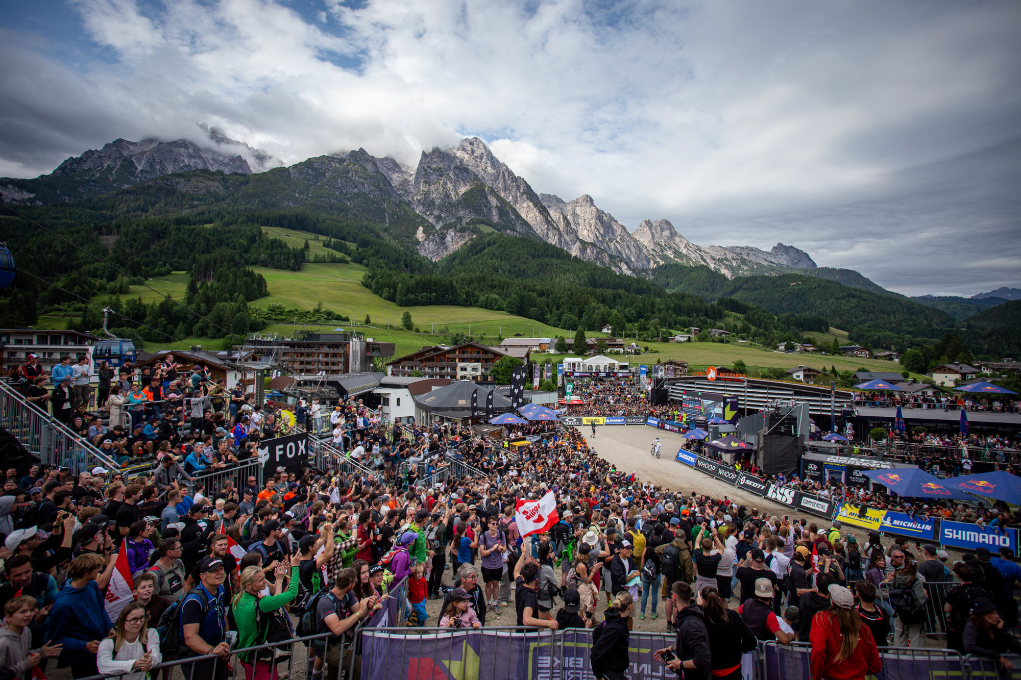Sjezd, který byl na programu v sobotu, má v Leogangu vždy obrovský ohlas, návštěvnost je mnohonásobně vyšší než na cross country. Domácí Vali Höll je silný tahák a fanoušci jsou holt svým "bohům" věrní jakože hodně...