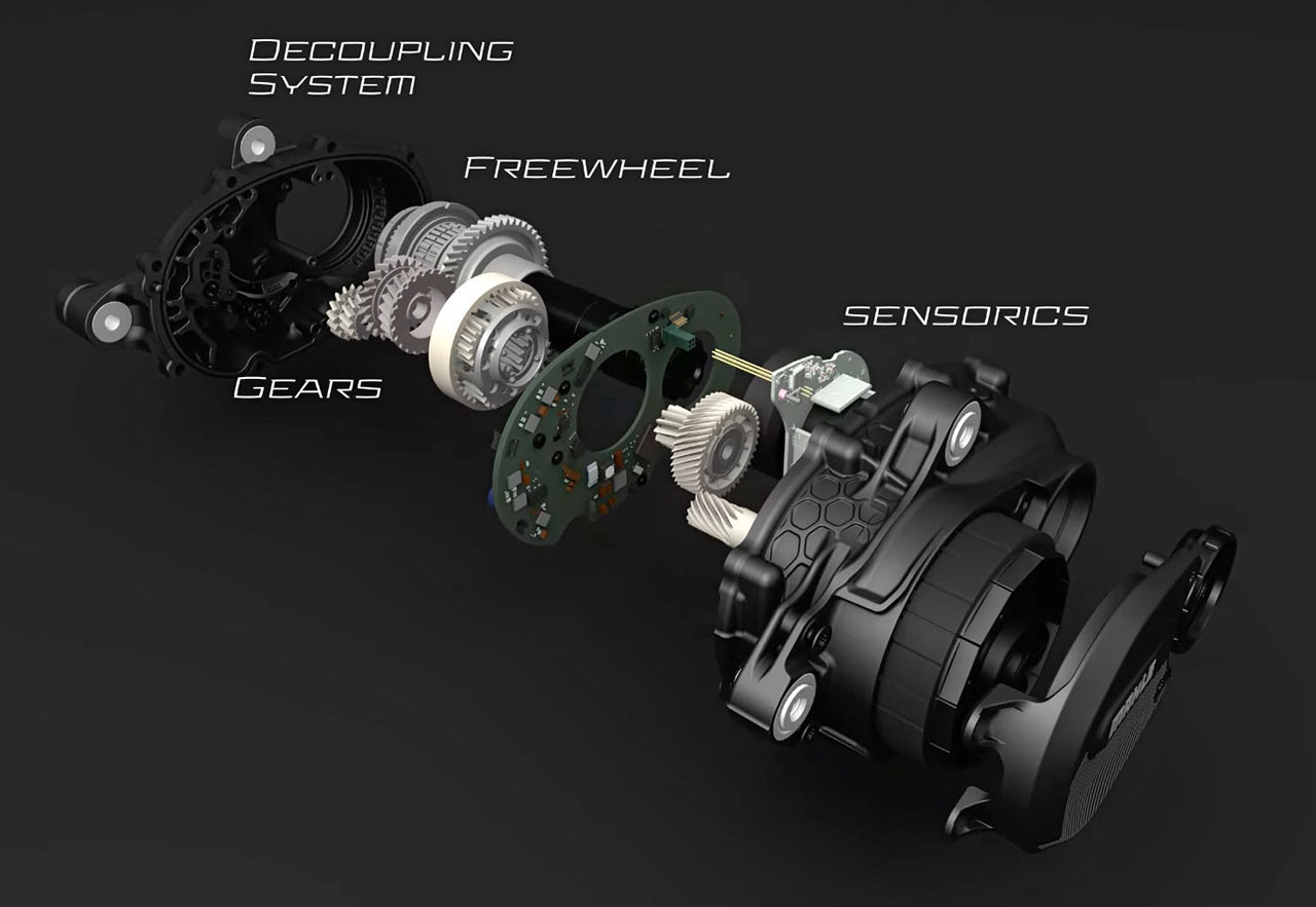 Samotný motor váží pouze 2,5 kg, což je v kategorii výkonných středových jednotek velice nízká hodnota. Navzdory nízké hmotnosti však nabízí 105 Nm točivého momentu a špičkový výkon až 850 W. Architektura systému je postavena na 48 V platformě, která pomáhá zvýšit účinnost i stabilitu výkonu v náročném terénu.