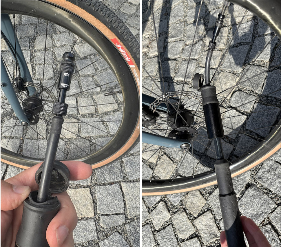Mnoho cyklistických pumpiček selhává právě kvůli absenci hadičky – přímý tlak na ventil při pumpování může vést k jeho ohnutí, utržení nebo vytržení duše. Airflex Explorer to řeší elegantně: hadička je šroubovací, měkká a chráněná v těle pumpy, takže ventil zůstává v bezpečí a pumpování je pohodlnější i přesnější.