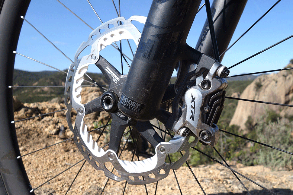Trailové brzy XTR se čtyřpístkovou konstrukcí dávají zapomenout na ultralehké, ale houbovité předchůdce. Brzdného výkonu je dostatek v každé situaci. Nástup brzdné síly je pozvolný oproti razantnímu nástupu třeba Avid Code. Otázka přehřívání brzd zůstává otevřená, protože při rychlém testu nebyla možnost dlouhého brzdění. Každopádně brzdy si poradily i s velmi prudkými úseky bez jakékoliv známky vadnutí.