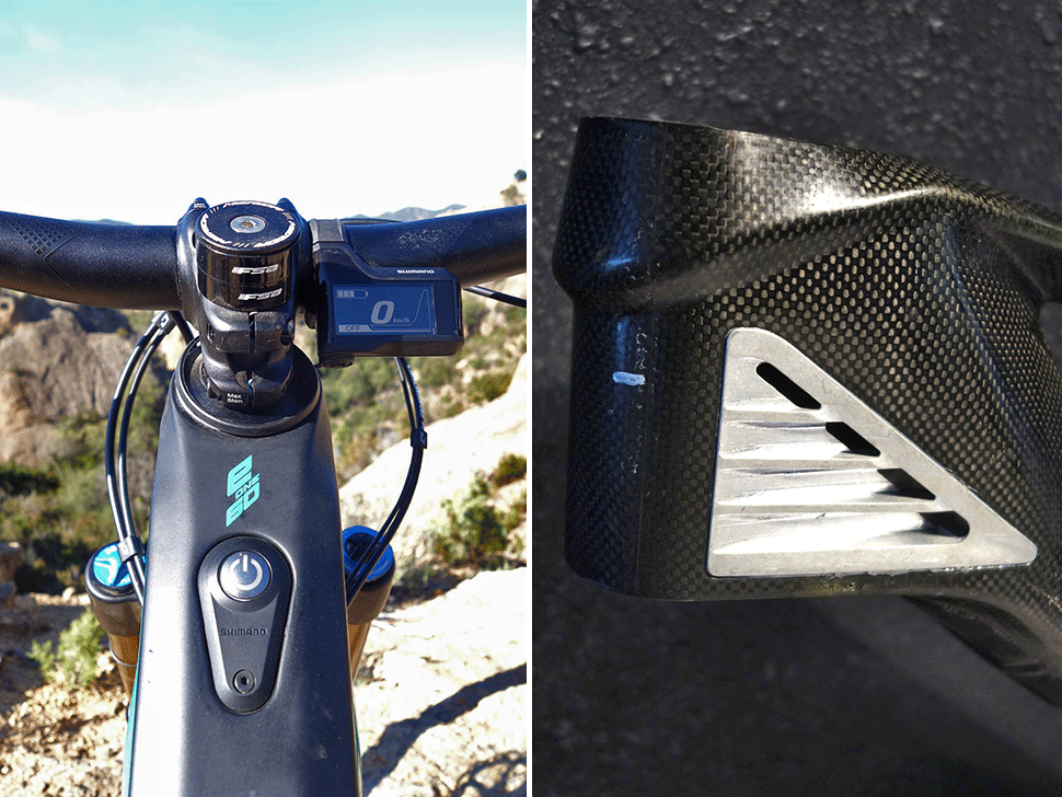 V některých momentech na sypkém povrchu mělo problém přední kolo s adhezí. Nový 29" průměr má lepší nájezdové úhly, ale v těchto konkrétních situacích je o něco nervóznější než 27,5+ kolegové. Otázkou je, jestli zvětšený průměr, ale užší plášť je lepším řešením, než široká guma menšího průměru. U downhillových strojů mají 29" opodstatnění, ale u e-biku, který je podstatně těžší a ani není určen pro DH tratě, je volba 29" diskutabilní, byť se k této kombinaci obrací stále více výrobců. Čas ukáže jestli se 29" průměr prosadí v e-bike světě.