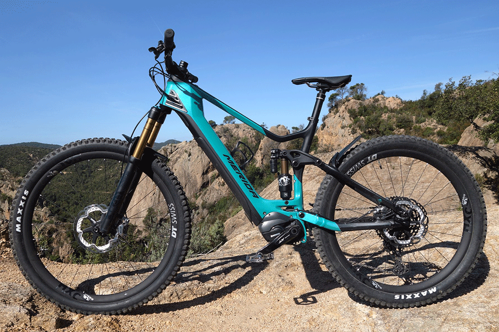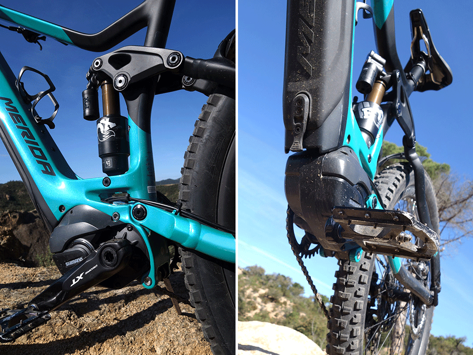 Samotné jízdní vlastnosti nové Meridy jsou jednoduše perfektní. Nízký střed spolu s nízko uloženou baterkou dává zapomenout, že řídíte 22kg e-bike. I do prudkých vraceček se elektrická stošedesátka nemusí moc přemlouvat. Až na pěšinkách v členitém terénu, kde je třeba snížit rychlost, se při zatáčení projevuje jednak větší váha celku a také největší rozměr pneumatiky, co je na trhu. Váha kola a pružící jednoty způsobují menší ochotu odpoutat se od povrchu. Na druhou stranu, kratší zadní stavba usnadňuje pokusy o bunny-hop, tím pádem se dá využít i malé hrany ke skoku. Ve skoku je Merida méně obratná stejně jako freeridy z minulého desetiletí. Tento neduh s e-biky zůstane do té doby, než se podaří snížit váhu, především baterií. Tady nepomůže žádná změna geometrie, ani ultranízké težiště, protože zde hraje prim setrvačnost. Pozitivem z tohoto ohledu je alespoň fakt, že těžiště biku je zde co nejníž to jde.