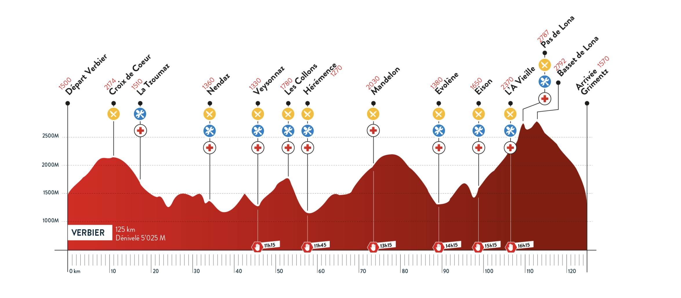 Trať závodu měří 125 kilometrů a převýšení činí přes 5 000 výškových metrů. Nejrychlejší jezdci trať zdolají za necelých 6 hodin a mimo jiné je unikátní tím, že startuje a finišuje v odlišných městech. Závod začíná ve Verbieru a cíl je v Grimentzu.