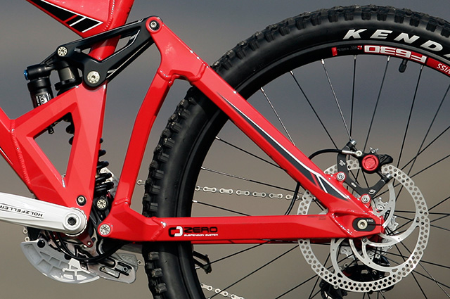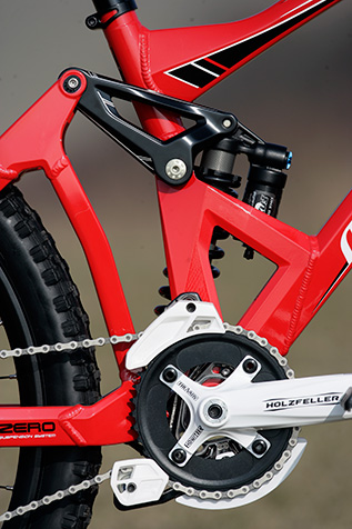Systém odpružení je v tomto případě postaven na bázi vlastního virtuálního systému, který tým konstruktérů nazval ZERO a který v sobě slučuje hned několik výhod počínaje nulovým propružováním při šlapání a konče minimálním vlivem brzdění na funkci zadního odpružení. Díky specifické trajektorii osy zadního kola nedochází k prodlužování tahové řetězové linky při propružování, ale ani k jejímu zkracování.
