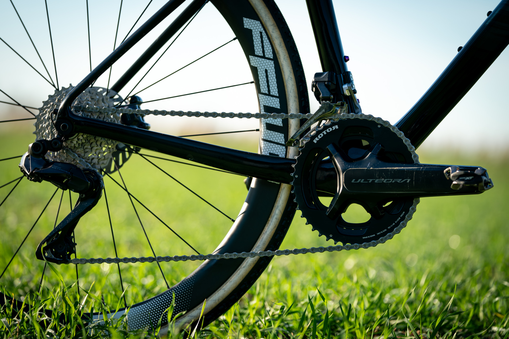 Jedinou výjimkou ze sady Ultegra jsou převodníky Rotor 46/36, vzadu pracuje jedenáctirychlostní kazeta 11-34z.