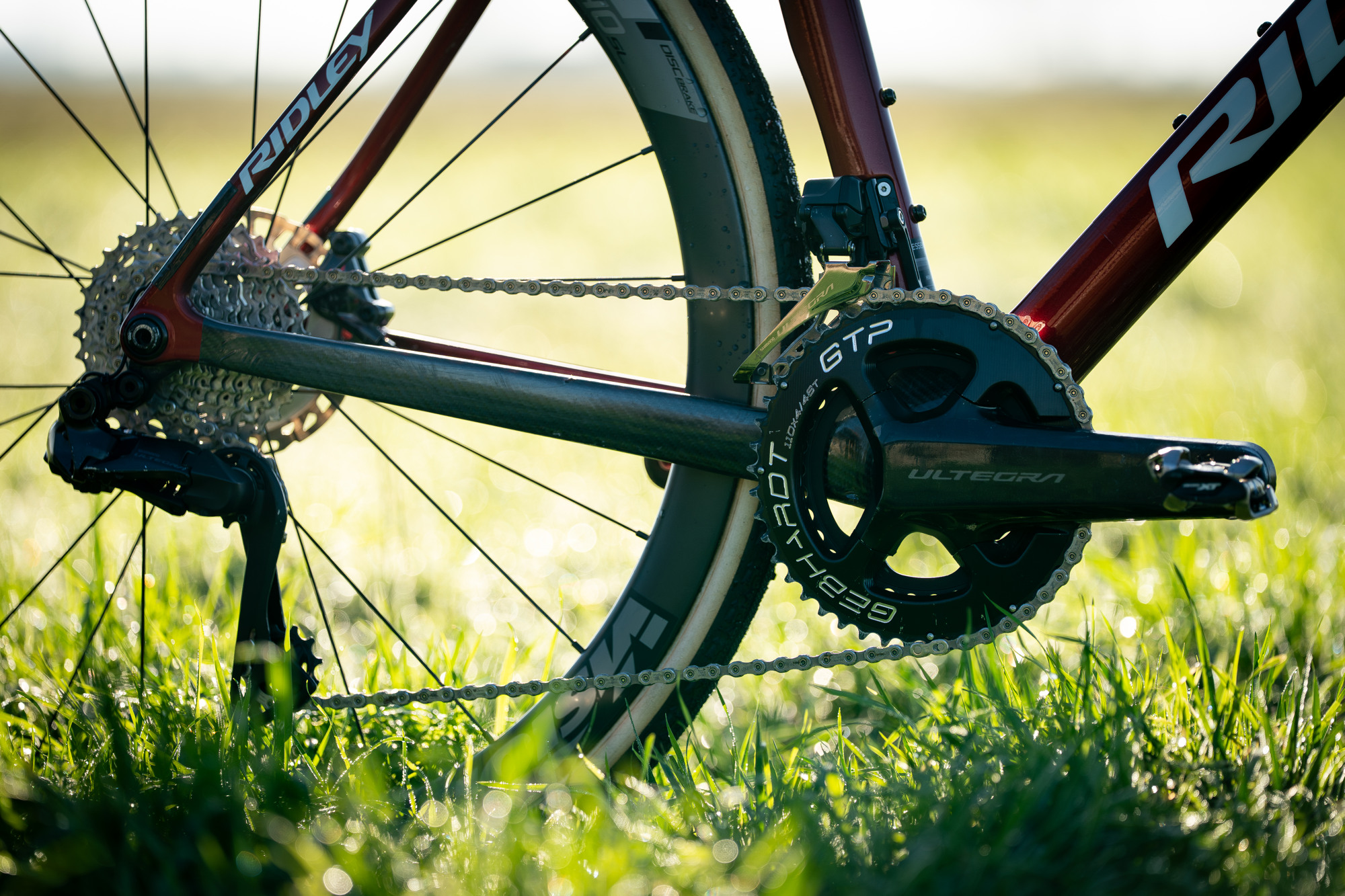 Kolo pohání i brzdí Shimano Ultegra. Dvojpřevodník je z české provinience Gebhardt 46/36. Dvanáctirychlostní kazeta má rozsah 11-34 zubů.