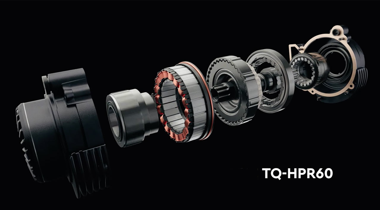 Srdcem kola je jednotka TQ HPR60 o hmotnosti pouhých 1,92 kg. Nabízí točivý moment 60 Nm, maximální výkon 350 W a podporu až 200 %, přičemž klade důraz na plynulý a okamžitý nástup bez prodlev. Harmonický převod s minimem pohyblivých dílů umožnil velmi kompaktní rozměry motoru a jeho téměř neviditelnou integraci do karbonového rámu.