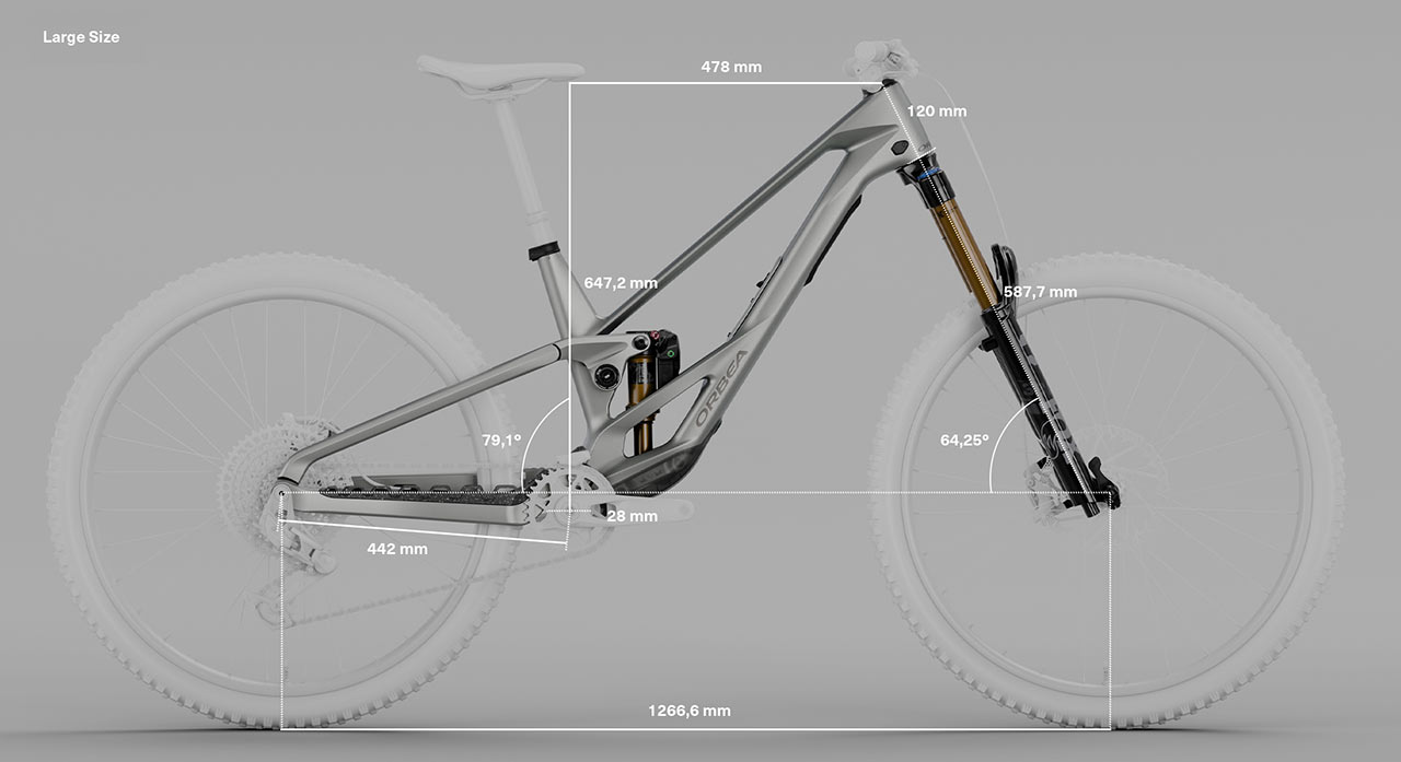 Nový Rallon DH je dostupný výhradně v mullet konfiguraci (29"/27,5"), která kombinuje průchodnost velkého kola vpředu s obratností menšího vzadu. Geometrie vznikala na základě let vývoje a testování na těch nejtěžších sjezdových tratích. Orbea navíc nabízí možnost upravit úhel hlavové trubky o ±0,75°, nastavit délku zadní stavby (442 nebo 450 mm) a přizpůsobit tak bike vašemu stylu jízdy, nikoliv velikosti rámu.